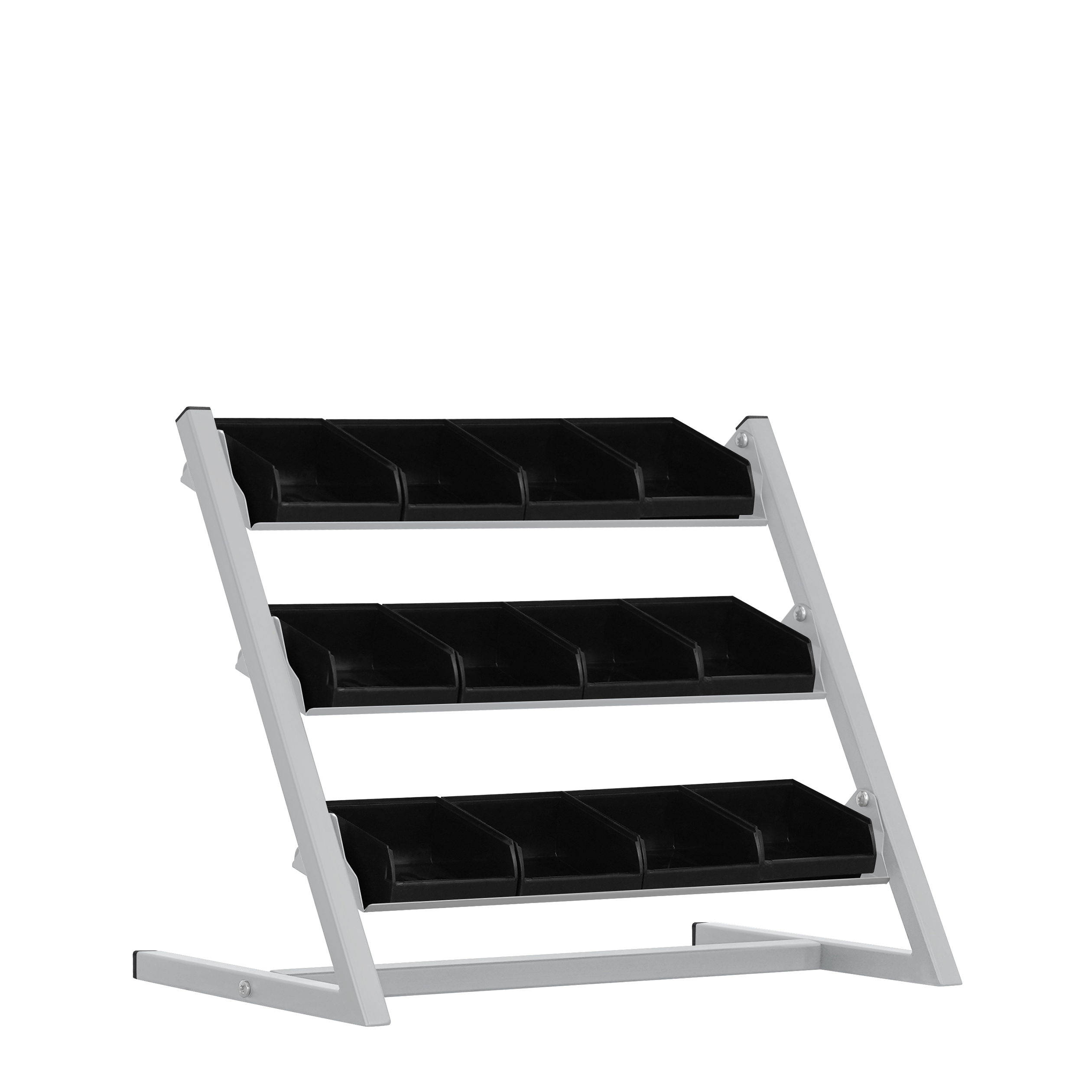 Настольная антистатическая система хранения имеет 12 лотков и используются для упорядоченного хранения мелких комплектующих требующих защиты от электростатического разряда. Так обеспечивается сохранение эксплуатационных свойств комплектующих и экономится пространство.