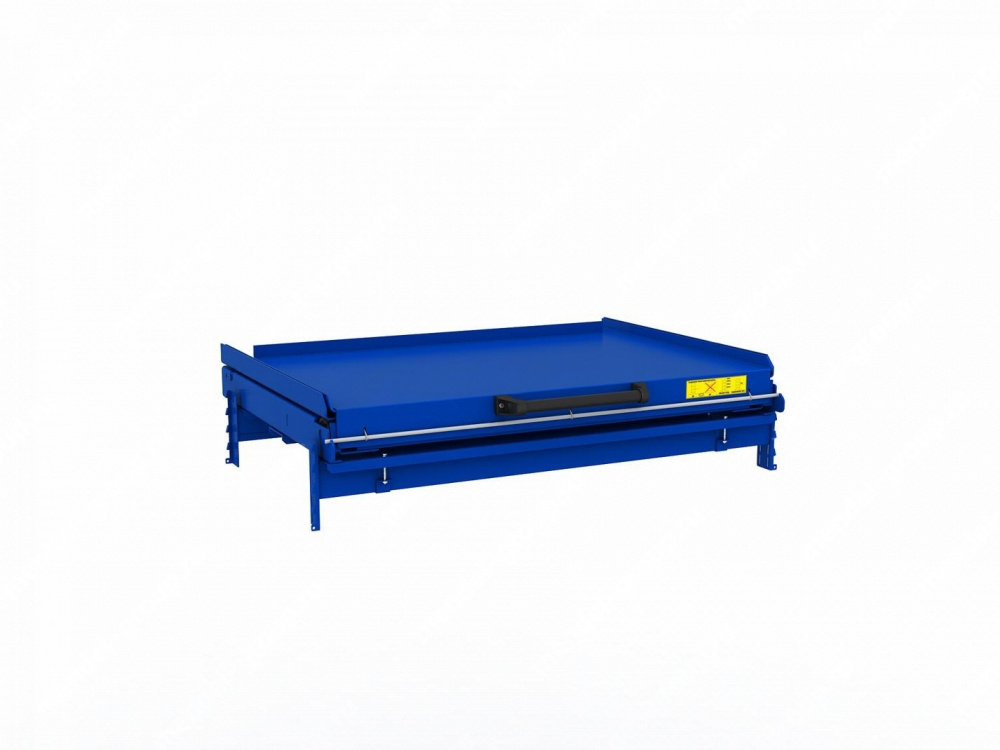 - Выкатная платформа на шарикоподшипниковых направляющих, закрепленных на балках стеллажа при помощи стяжных кронштейнов (4 шт/платформу), с ручкой и фиксатором (блокировка выкатывания)