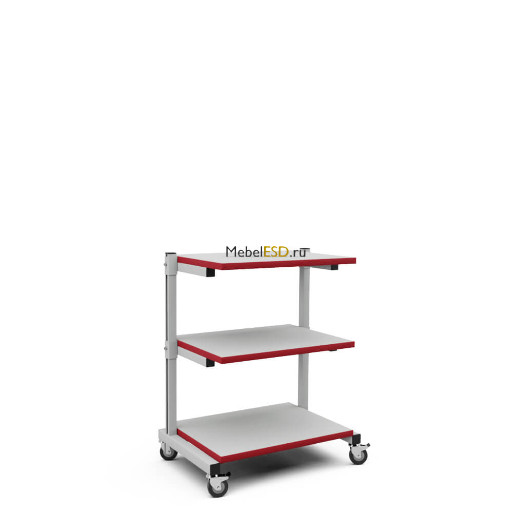 Стойка оснащена четырьмя колесными опорами, две из них с механизмом фиксации. Полки толщиной 25 мм изготовлены из ламинированного ДСП. Износостойкое покрытие из промышленного пластика обладает высокой стойкостью к термическим и механическим нагрузкам. Цвет боковой кромки полки фирменный бордовый, под заказ любой другой на Ваш выбор.