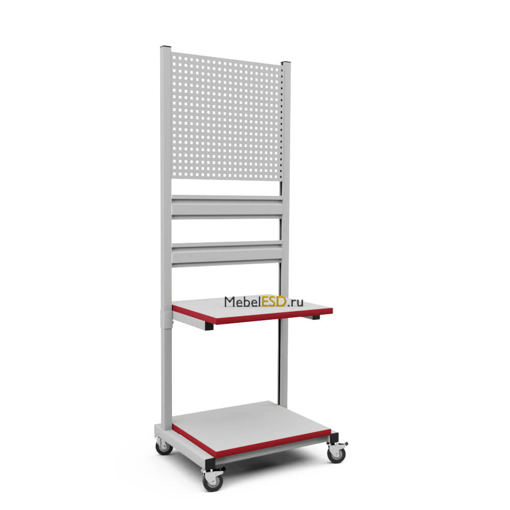 Стойка подкатная универсальная СПУ используется для хранения и перемещения инструментов, материалов и комплектующих в рабочем пространстве. В стандартной комплектации стойка поставляется в комплекте с полкой для оборудования ПОС, панелью перфорированной ППМ и планкой для лотков ПЛМ (2 шт.). Возможно зеркальное (двухстороннее) размещение планок для лотков и перфопанелей. Регулировка высоты дополнительного оборудования осуществляется по боковым стойкам. Конструкция стойки позволяет оснастить ее дополнительным оборудованием — полками, перфопанелями и планками для лотков. Стойка мобильная имеет металлический каркас, окрашенный порошковой краской.